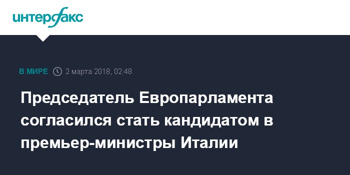 Председатель Европарламента согласился стать кандидатом в премьер-министры Италии