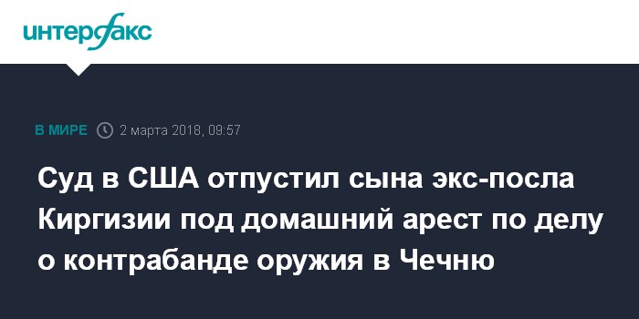 Суд в США отпустил сына экс-посла Киргизии под домашний арест по делу о контрабанде оружия в Чечню