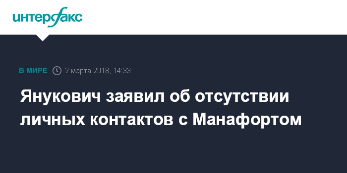 При этом он добавил, что контактировал с Манафортом лишь наравне с другими советниками, но не лично. "После выборов он был моим советником на общественных началах, я с ним встречался всегда на тех же встречах, что и с остальными советниками. Как таковых личных контактов у меня с ним никогда не было, он работал с администрацией президента. После того, как выехал из Украины, я Манафорта не видел и не слышал", - сказал Янукович.
