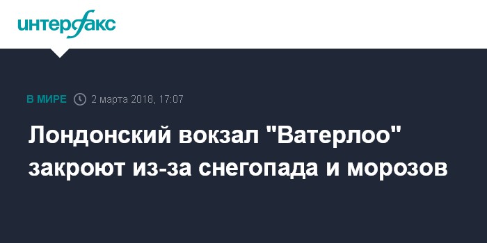 Москва. 2 марта. INTERFAX.RU - Железнодорожный вокзал "Ватерлоо" в Лондоне в пятницу отменил прибытие и отправление поездов после 20:00 по местному времени из-за сильного снегопада и морозов, сообщает The Independent.