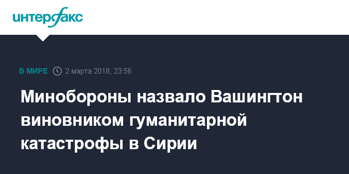 Минобороны назвало Вашингтон виновником гуманитарной катастрофы в Сирии