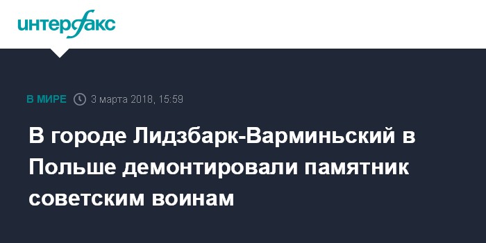 В городе Лидзбарк-Варминьский в Польше демонтировали памятник советским воинам