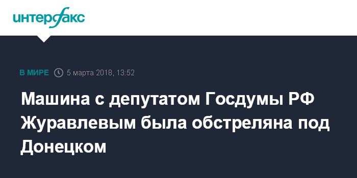 Машина с депутатом Госдумы РФ Журавлевым была обстреляна под Донецком