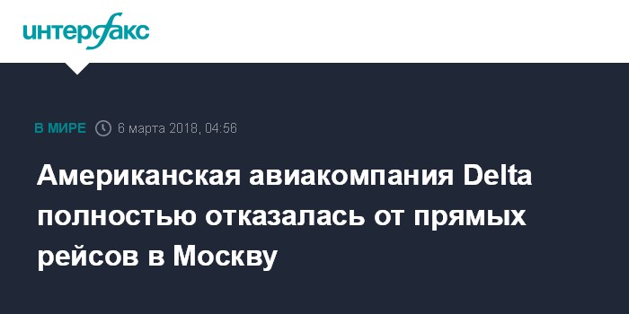 Американская авиакомпания Delta полностью отказалась от прямых рейсов в Москву