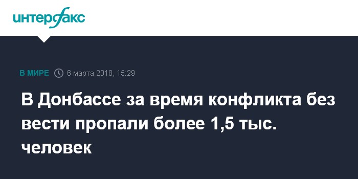 Москва. 6 марта. INTERFAX.RU - Свыше 1500 человек пропали без вести за время конфликта в Донбассе, заявил журналистам пресс-секретарь Международного Комитета Красного Креста Миладин Богетич.