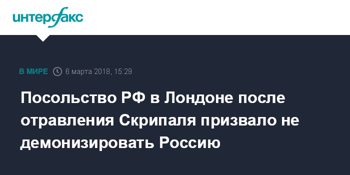 Посольство РФ в Лондоне после отравления Скрипаля призвало не демонизировать Россию