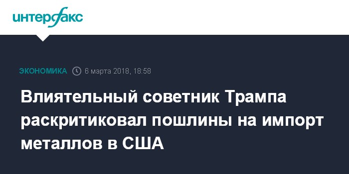 Влиятельный советник Трампа раскритиковал пошлины на импорт металлов в США