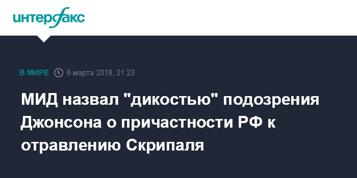 МИД назвал "дикостью" подозрения Джонсона о причастности РФ к отравлению Скрипаля