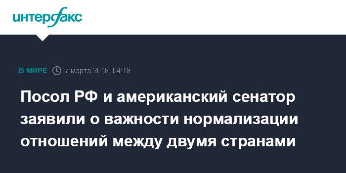 Посол РФ и американский сенатор заявили о важности нормализации отношений между двумя странами