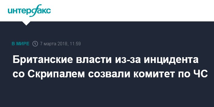 Москва. 7 марта. INTERFAX.RU - Правительство Великобритании созывает чрезвычайный антикризисный комитет COBRA на заседание, которое будет посвящено инциденту с возможным отравлением бывшего полковника ГРУ Сергея Скрипаля, передают местные СМИ.