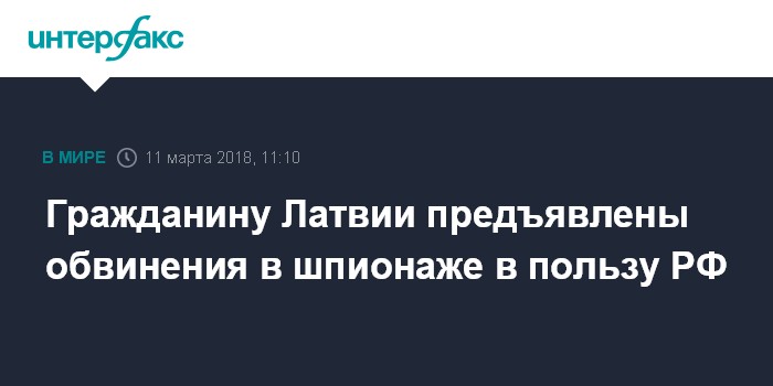 Москва. 11 марта. INTERFAX.RU - Прокуратура Видземского судебного округа Латвии предъявила латвийскому гражданину обвинение в шпионаже в пользу России.