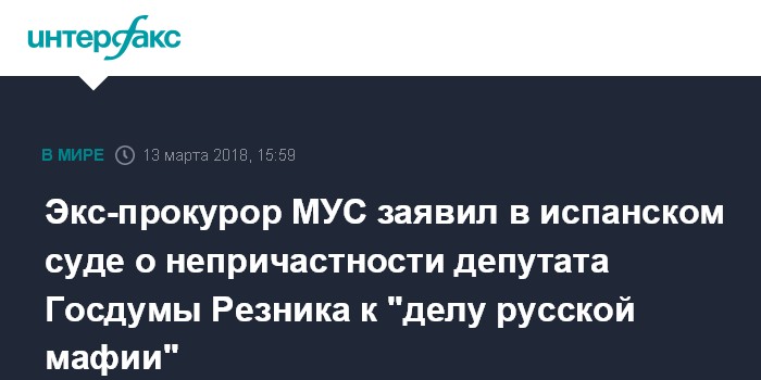 Экс-прокурор МУС заявил в испанском суде о непричастности депутата Госдумы Резника к "делу русской мафии"