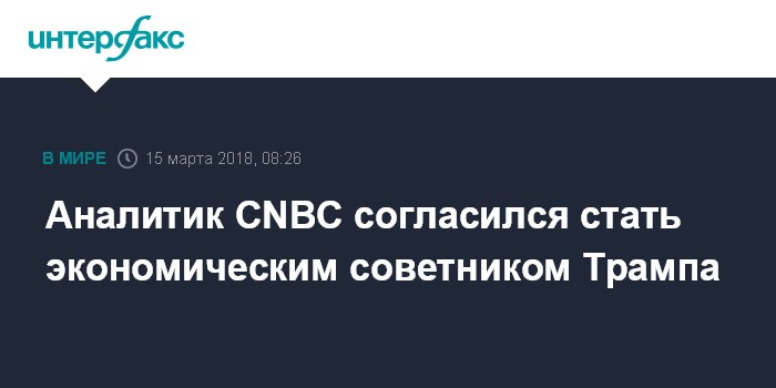 Москва. 15 марта. INTERFAX.RU - Аналитик и тележурналист канала CNBC Лоуренс Кадлоу принял предложение президента США Дональда Трампа стать новым экономическим советником президента. Об этом Кадлоу заявил в среду агентству Associated Press.
