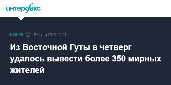 "В результате достигнутых на переговорах с лидерами НВФ в Восточной Гуте договорённостей в ходе гуманитарной паузы в четверг был организован массовый организованный выход мирных жителей. К настоящему моменту более 350 жителей населённого пункта Хамурия покинули район, воспользовавшись гуманитарным коридором", - сказал он.