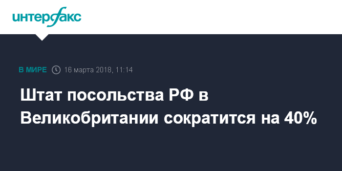 "Без всякого сомнения, это (высылка российских дипломатов) окажет серьезное воздействие на работу посольства. Это примерно сокращение персонала на 40%", - сказал высокопоставленный российский дипломат в интервью телеканалу "Россия 24" (ВГТРК).