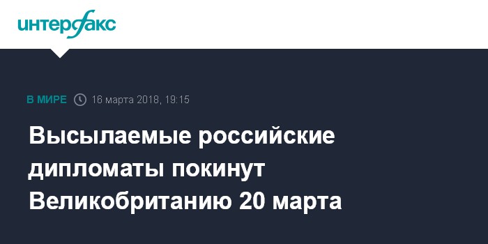 Высылаемые российские дипломаты покинут Великобританию 20 марта