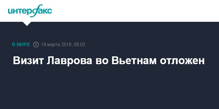 "В связи с изменением рабочего графика министра даты его визита во Вьетнам сейчас корректируются", - сказали "Интерфаксу" в МИД РФ.