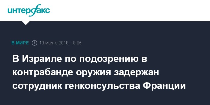 Москва. 19 марта. INTERFAX.RU - Сотрудник генконсульства Франции в Иерусалиме задержан по подозрению в контрабанде оружия из сектора Газа на Западный берег реки Иордан, сообщает в понедельник израильская газета "Гаарец".