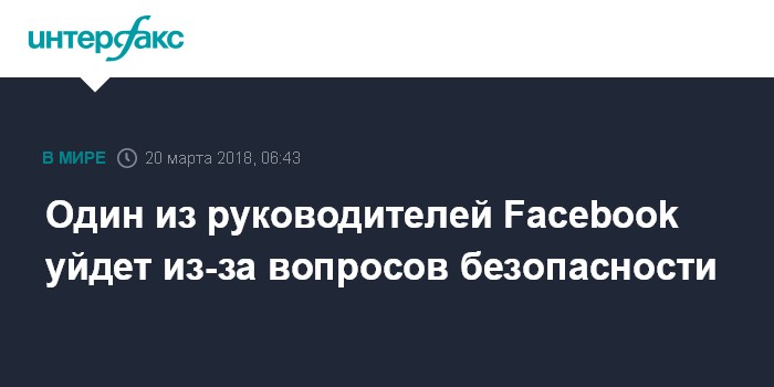 Один из руководителей Facebook уйдет из-за вопросов безопасности