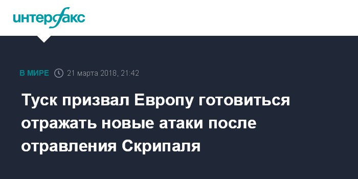 Москва. 21 марта. INTERFAX.RU - Председатель Европейского совета Дональд Туск в среду призвал Европу готовиться к новым атакам после отравления экс-полковника ГРУ Сергея Скрипаля в британском Солсбери.