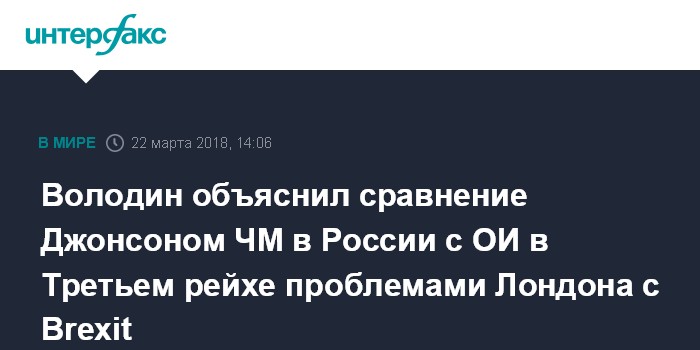 Володин объяснил сравнение Джонсоном ЧМ в России с ОИ в Третьем рейхе проблемами Лондона с Brexit