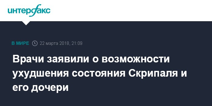 Москва. 22 марта. INTERFAX.RU - Экс-сотрудник ГРУ Сергей Скрипаль и его дочь Юлия, отравленные в британском Солбсери, по-прежнему находятся в критическом состоянии, сообщает в четверг телеканал Sky News со ссылкой на заявление Лондонского суда, занимающегося вопросами защиты интересов недееспособных лиц.