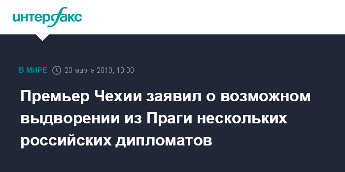 Москва. 23 марта. INTERFAX.RU - В Праге не исключают выдворения российских дипломатов в ответ на инцидент с бывшим сотрудником ГРУ Сергеем Скрипалем и его дочерью в Великобритании, сообщил в Брюсселе премьер-министр Чехии Андрей Бабиш.