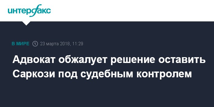 Москва. 23 марта. INTERFAX.RU - Адвокат бывшего президента Франции Николя Сакрози в пятницу заявил, что подаст апелляцию на решение судебных властей оставить его под судебным контролем.