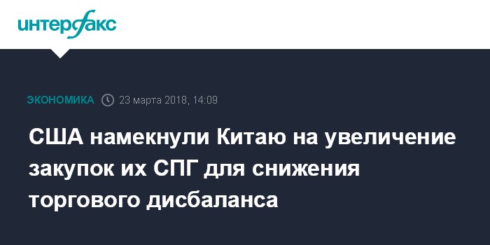 Москва. 23 марта. INTERFAX.RU - США недовольны значительным торговым дефицитом в отношениях с Китаем, но у Пекина есть способы решить эту проблему, одним из которых является увеличение импорта американского природного газа, считает министр торговли США Уилбур Росс.