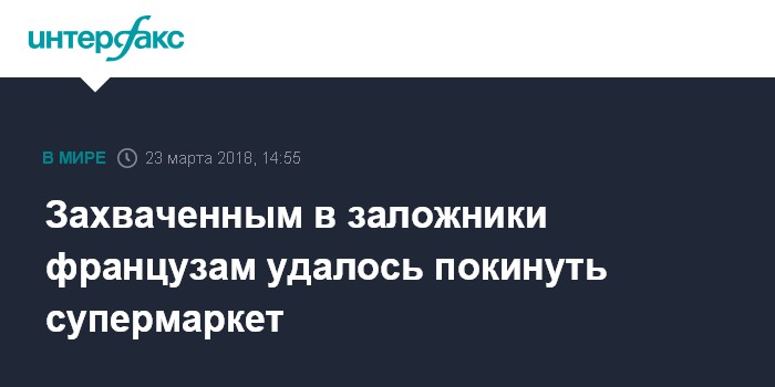 Москва. 23 марта. INTERFAX.RU - Примерно 20 людям, которые ранее были захвачены в заложники в супермаркете во французском населенном пункте Треб, удалось покинуть помещение, сообщает в пятницу французский телеканал BFM TV.