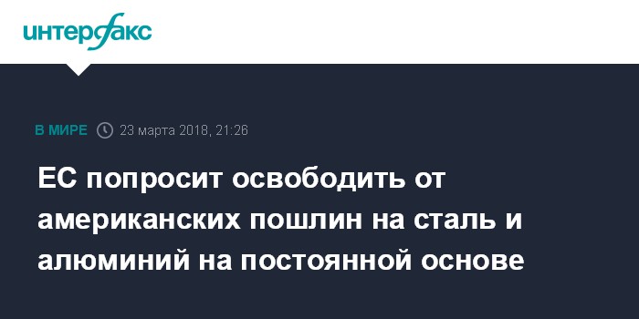 Москва. 23 марта. INTERFAX.RU - Евросоюз будет просить освободить от американских пошлин на сталь и алюминий на постоянной основе, сказал председатель Европейской комиссии Жан-Клод Юнкер.