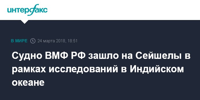 Судно ВМФ РФ зашло на Сейшелы в рамках исследований в Индийском океане