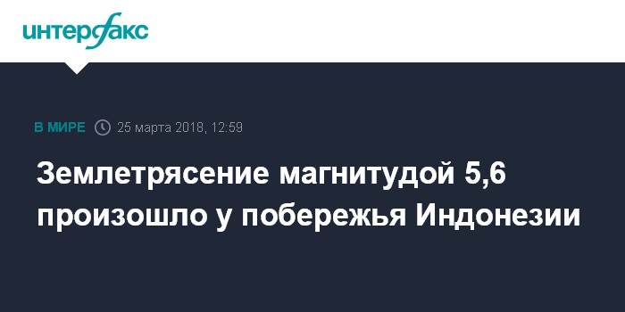 Землетрясение магнитудой 5,6 произошло у побережья Индонезии