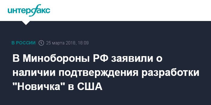 В Минобороны РФ заявили о наличии подтверждения разработки "Новичка" в США