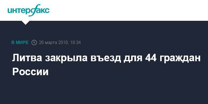 Москва. 26 марта. INTERFAX.RU - В понедельник главы министерства внутренних дел и департамента миграции Литвы подписали указы, согласно которым в страну запрещен въезд 44 гражданам России.