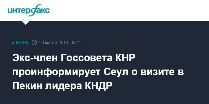 Экс-член Госсовета КНР проинформирует Сеул о визите в Пекин лидера КНДР