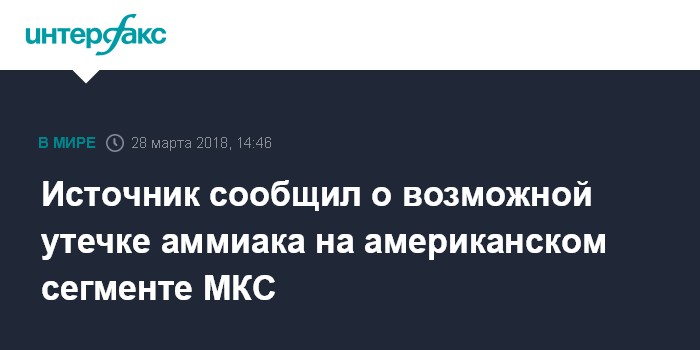 "Предположительно из-за технологического сбоя в работе блока управления насосами снаружи станции происходит утечка аммиака из системы терморегулирования на американском сегменте", - сказал источник.