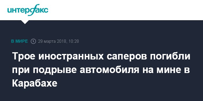Трое иностранных саперов погибли при подрыве автомобиля на мине в Карабахе