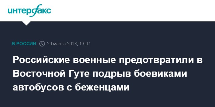 Российские военные предотвратили в Восточной Гуте подрыв боевиками автобусов с беженцами