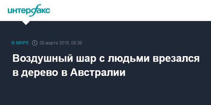 Москва. 30 марта. INTERFAX.RU - Не менее 11 человек получили травмы после того, как воздушный шар по время посадки врезался в дерево на севере австралийского города Сидней, сообщает в пятницу агентство Associated Press.