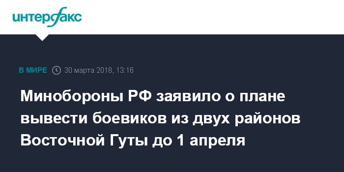 Минобороны РФ заявило о плане вывести боевиков из двух районов Восточной Гуты до 1 апреля