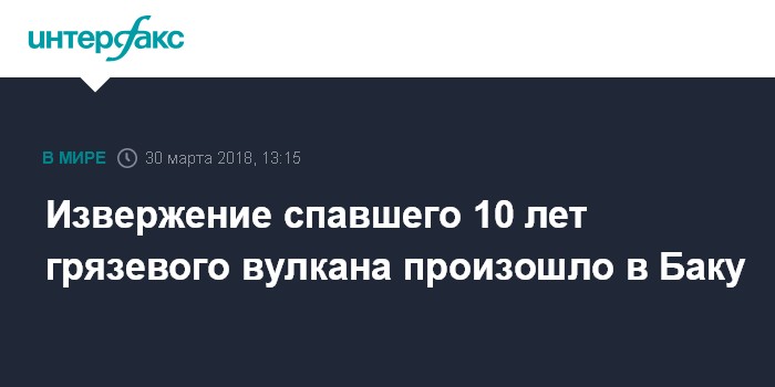 Москва. 30 марта. INTERFAX.RU - Извержение грязевого вулкана Айрантокен произошло в Баку, сообщили в пятницу в Министерстве экологии и природных ресурсов Азербайджана.
