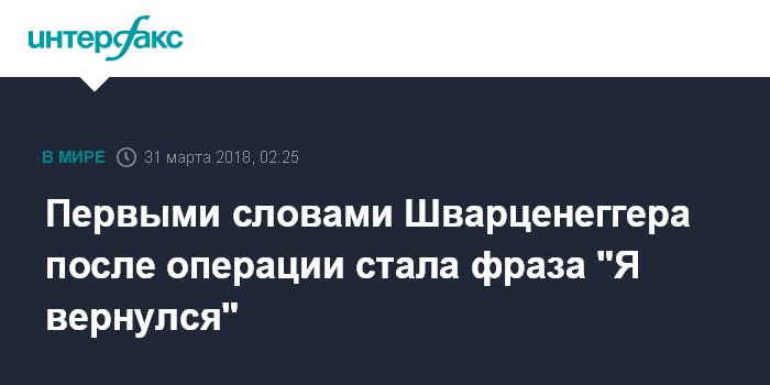 Первыми словами Шварценеггера после операции стала фраза "Я вернулся"