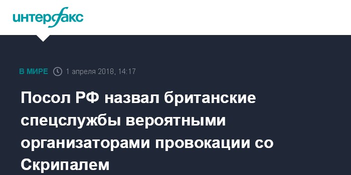 Москва. 1 апреля. INTERFAX.RU - Лондону придется отвечать за провокацию с "делом Скрипаля", которую, вероятно, организовали британские спецслужбы, заявил посол России в Великобритании Александр Яковенко.