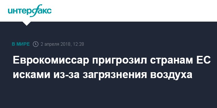 Еврокомиссар пригрозил странам ЕС исками из-за загрязнения воздуха