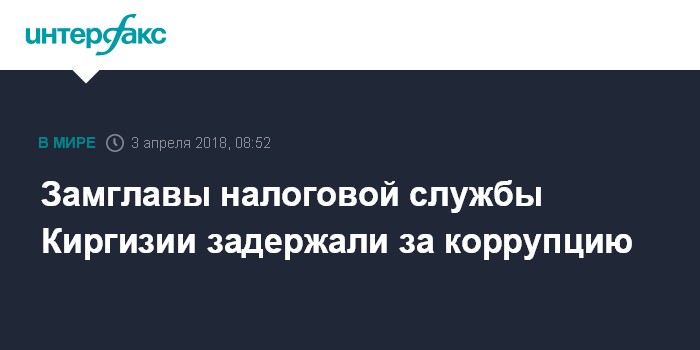 В конце марта сотрудники ГКНБ Киргизии задержали семь человек, в том числе пять сотрудников налоговой службы, причастных хищению более $12 млн бюджетных средств. Среди задержанных - инспекторы и начальники районного отдела по городу Бишкек и центрального аппарата ГНС республики.