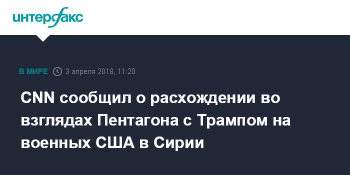 Ранее телеканал также сообщал, что слова Трампа о выводе войск из Сирии также вызвали недоумение в Пентагоне.