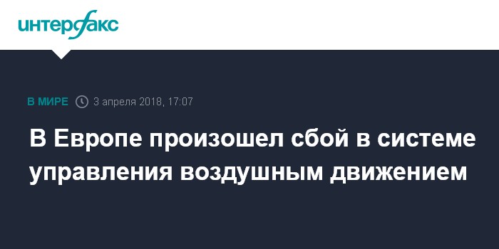 Москва. 3 апреля. INTERFAX.RU - Европейская организация по безопасности воздушной навигации Eurocontrol объявила во вторник в своем твиттере о сбое Расширенной системы тактического управления потоками.