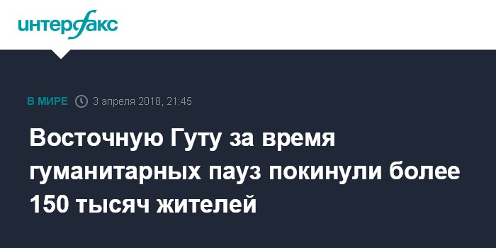 Москва. 3 апреля. INTERFAX.RU - Более 155 тысяч мирных жителей покинули сирийскую Восточную Гуту за время гуманитарных пауз, сообщили российские военные.