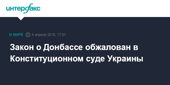 Москва. 4 апреля. INTERFAX.RU - Группа народных депутатов Украины обжаловала в Конституционном суде принятый Верховной радой закон об обеспечении государственного суверенитета Украины в Донбассе, сообщил народный депутат, член комитета по вопросам национальной безопасности и обороны Иван Винник (фракция "Блок Петра Порошенко").